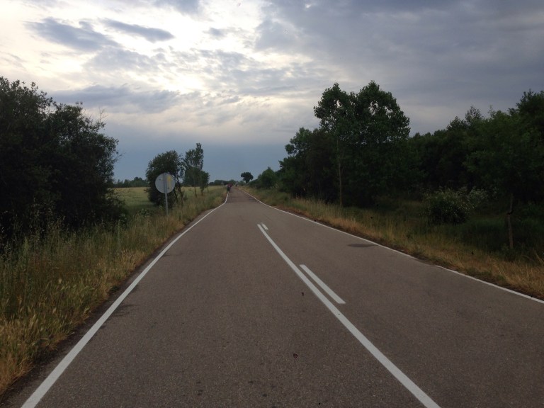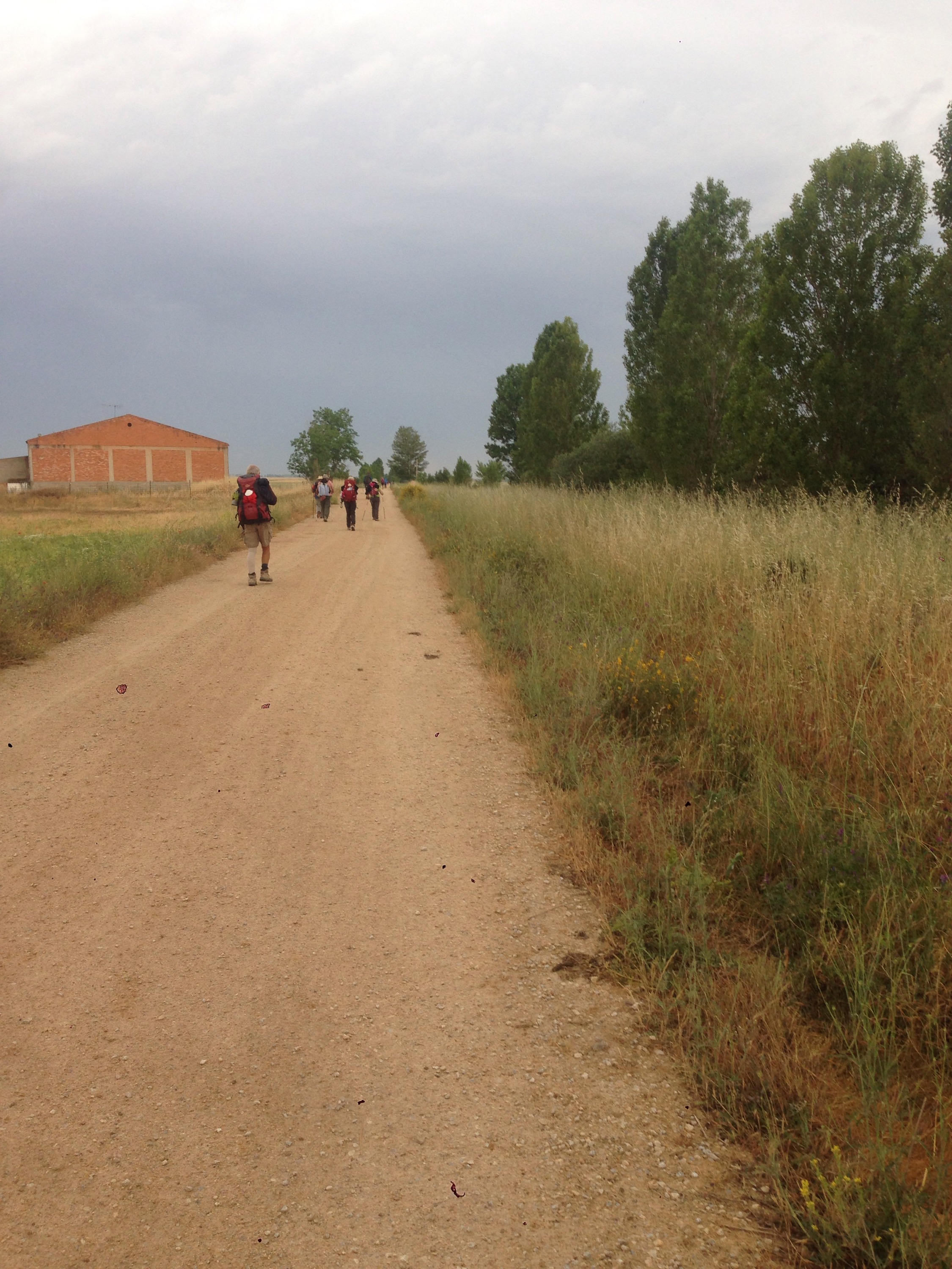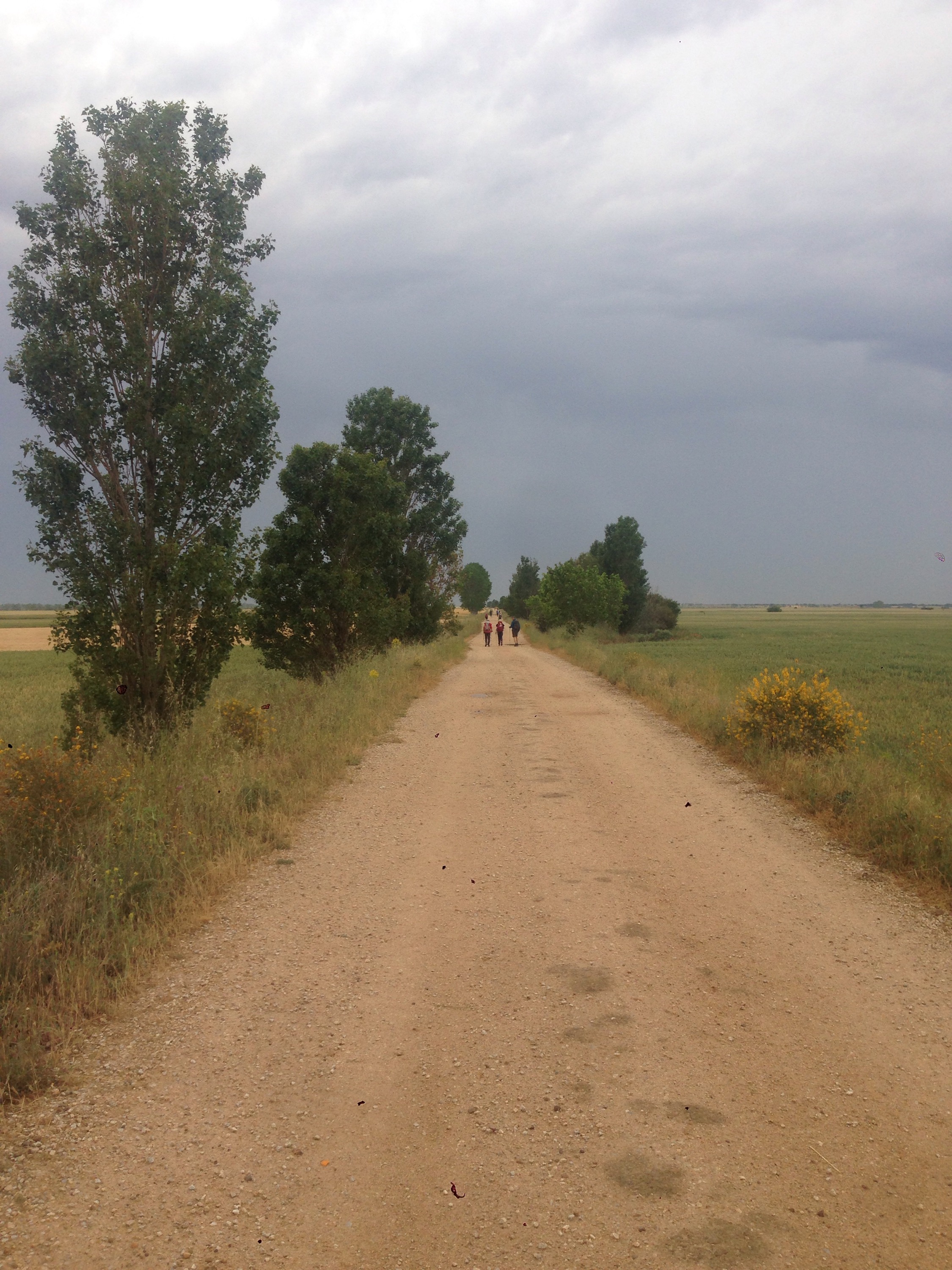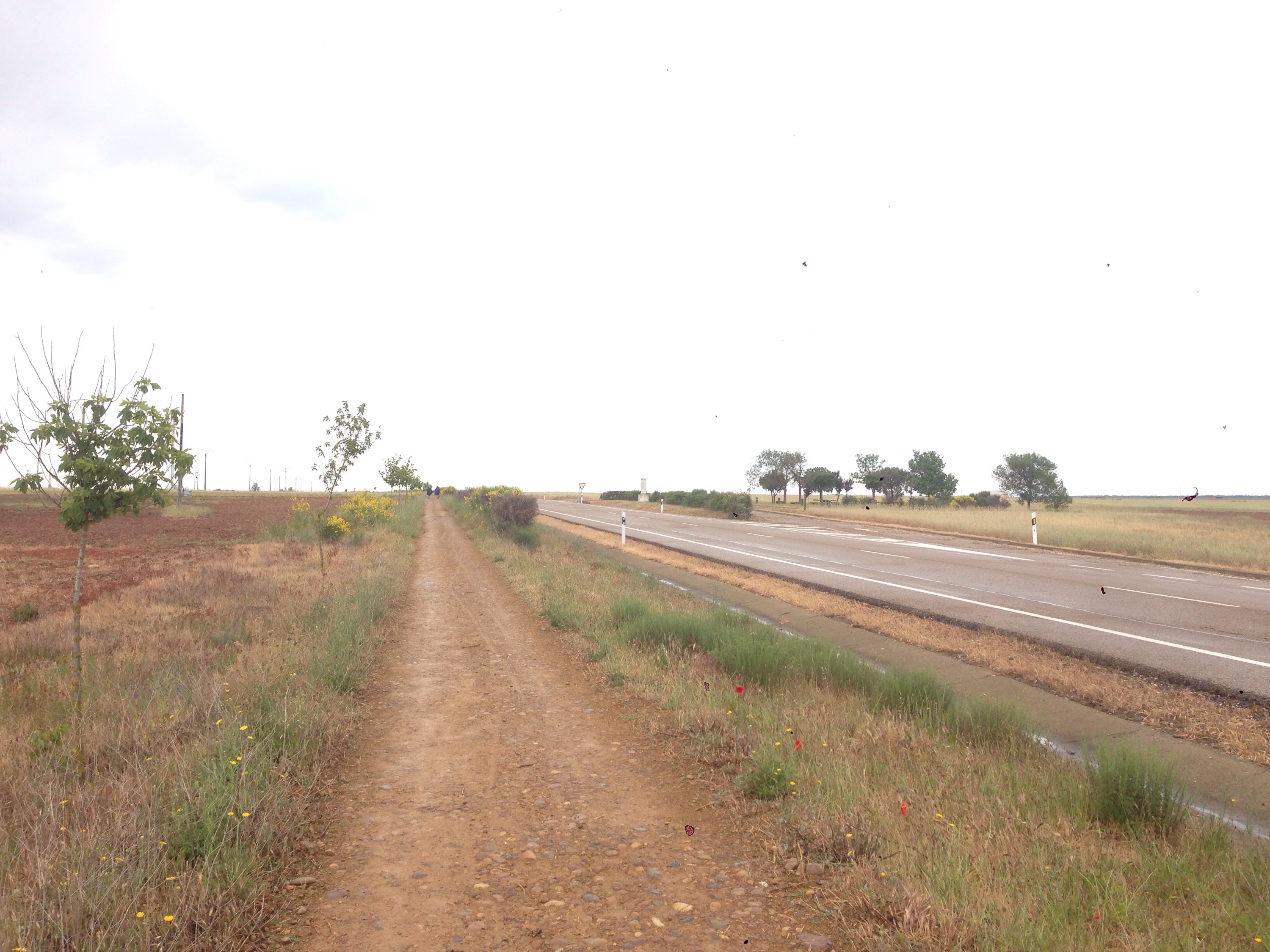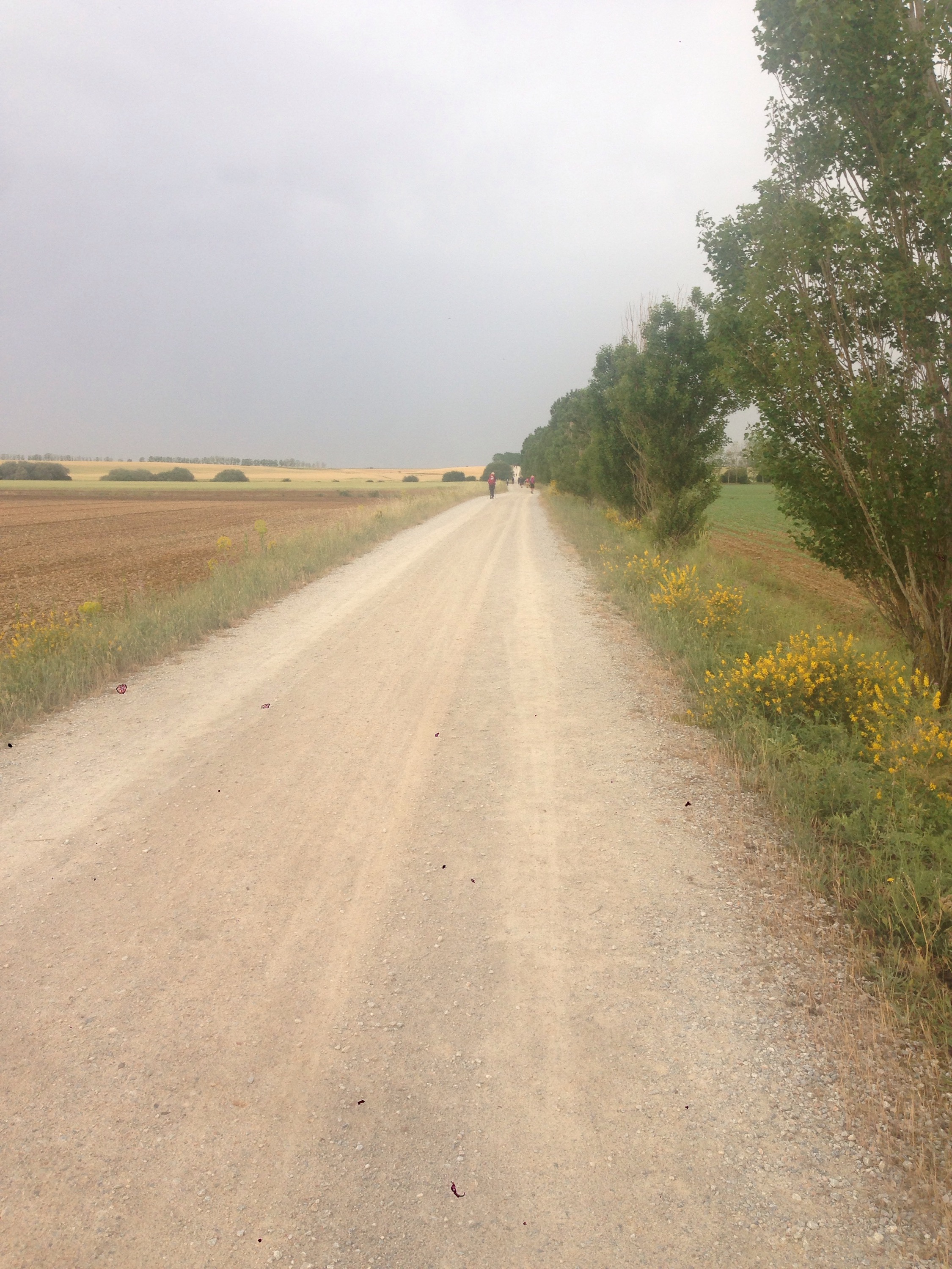 Very grey this morning though no rain predicted till 18.00hrs. The whole route was along side a country road again. Very flat – still in the meseta.