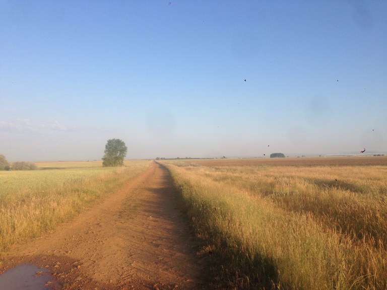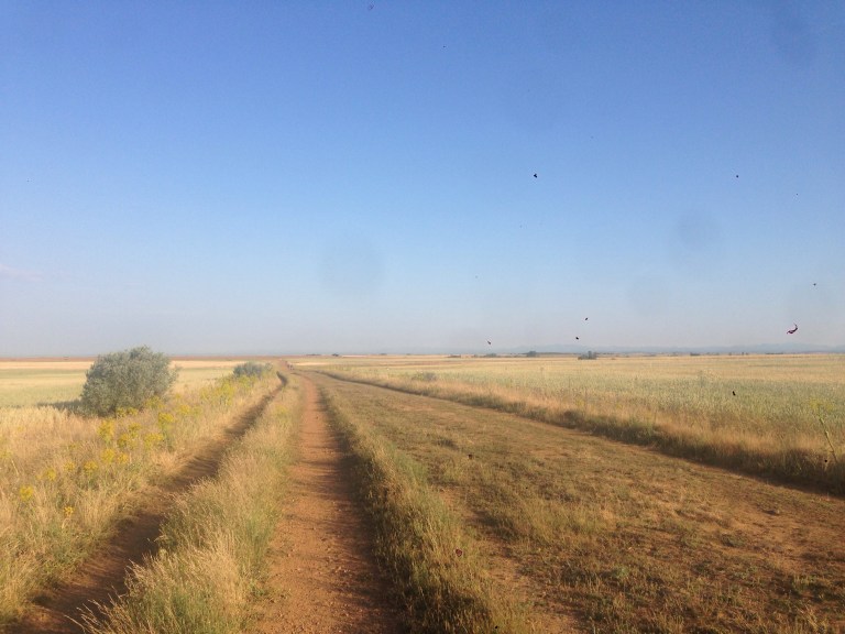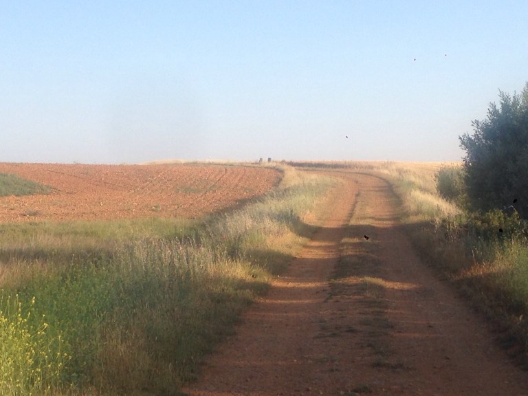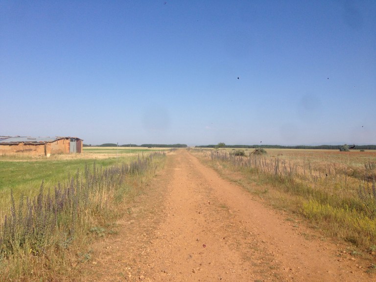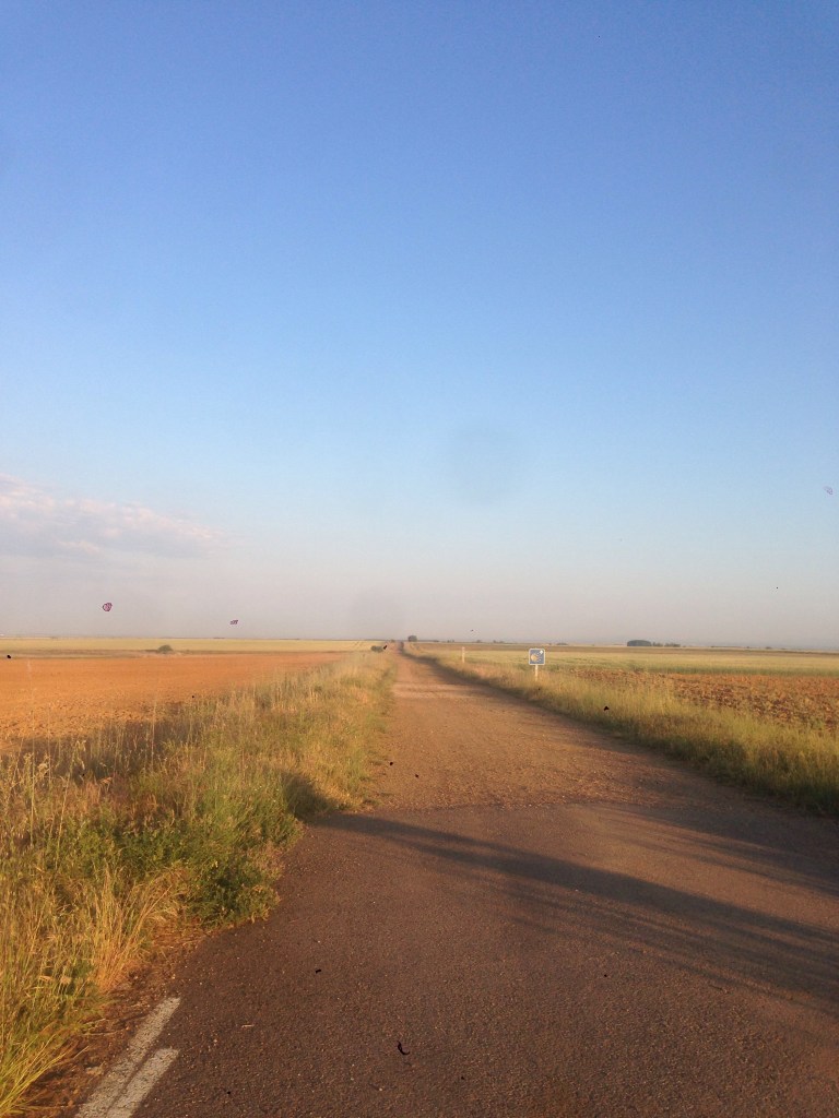 The path between Reliegios and Mansilla was along a very bright white senda beside a very quiet road.