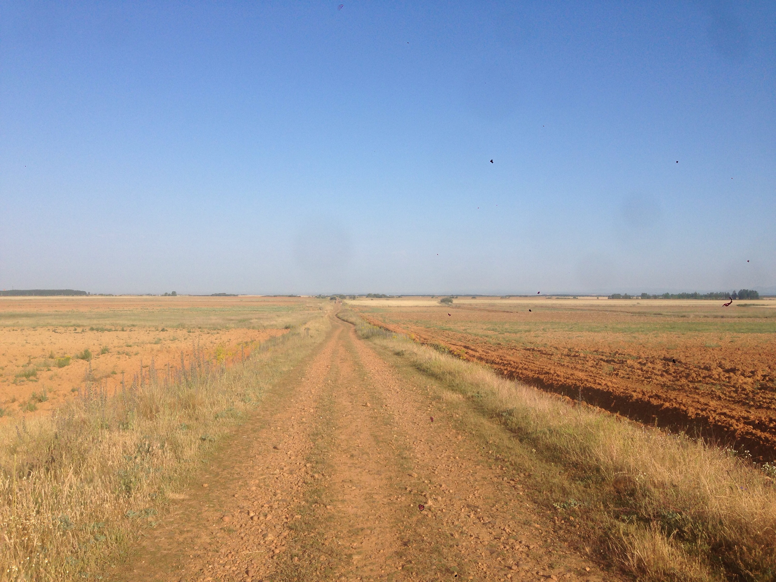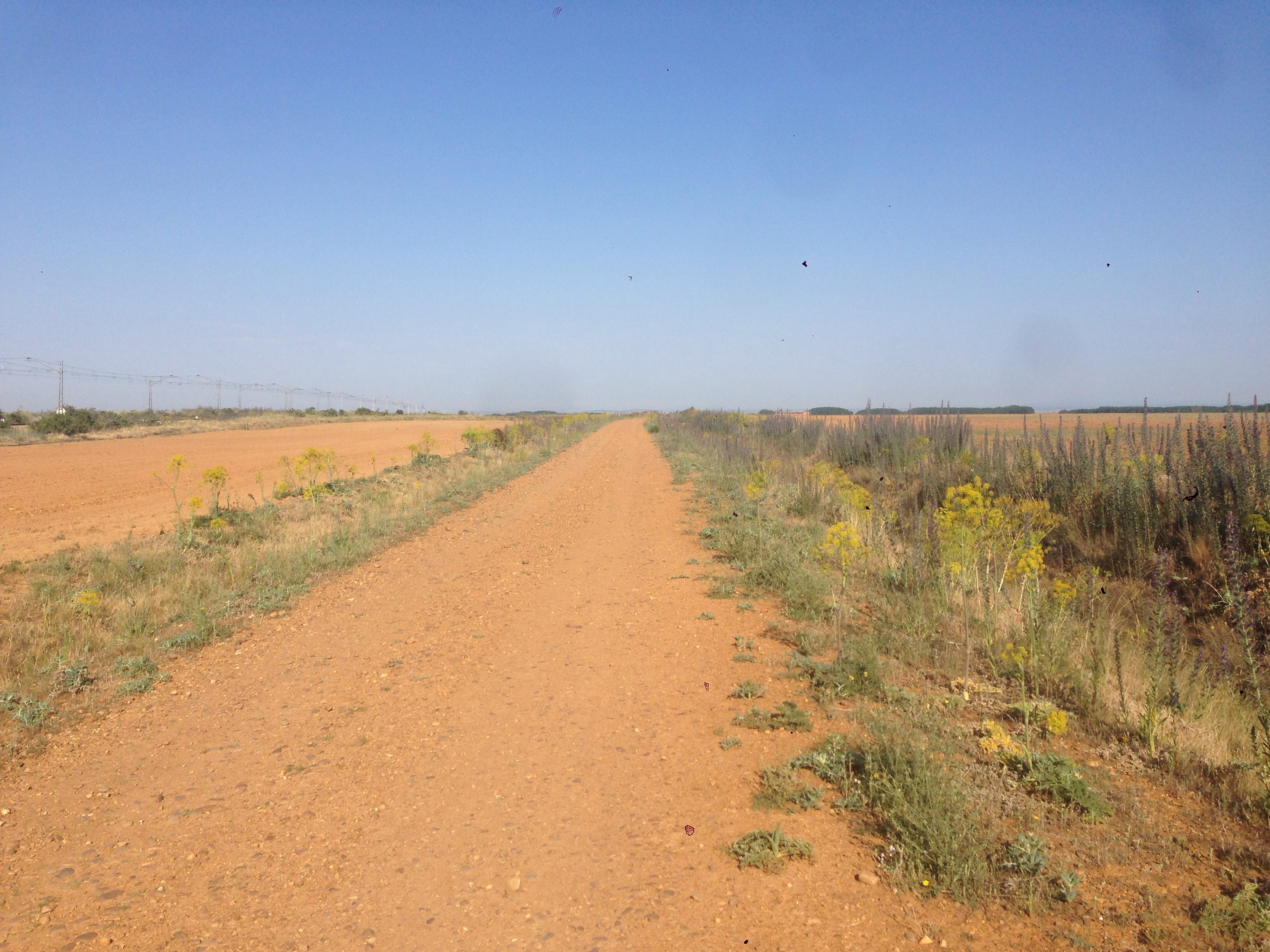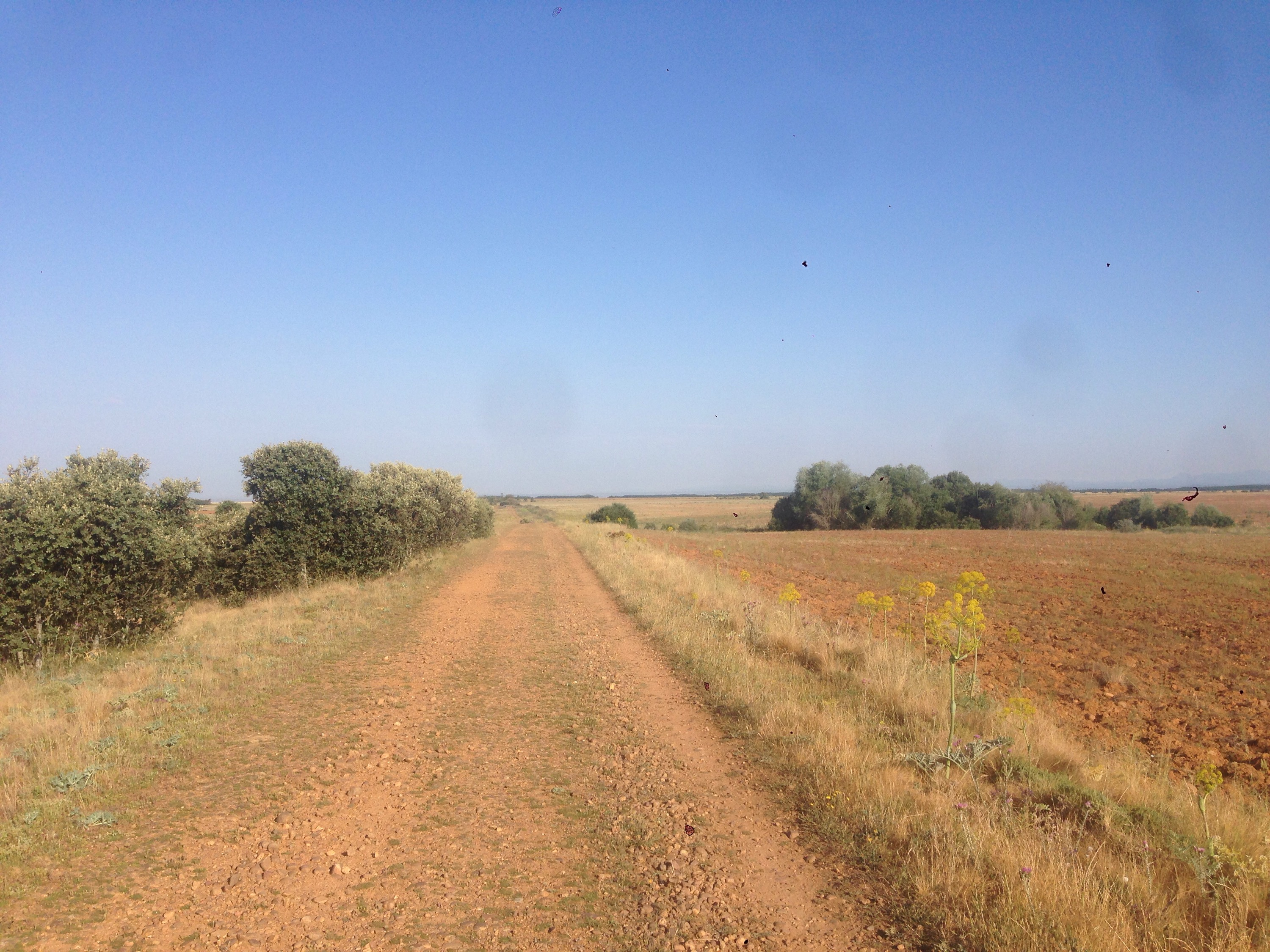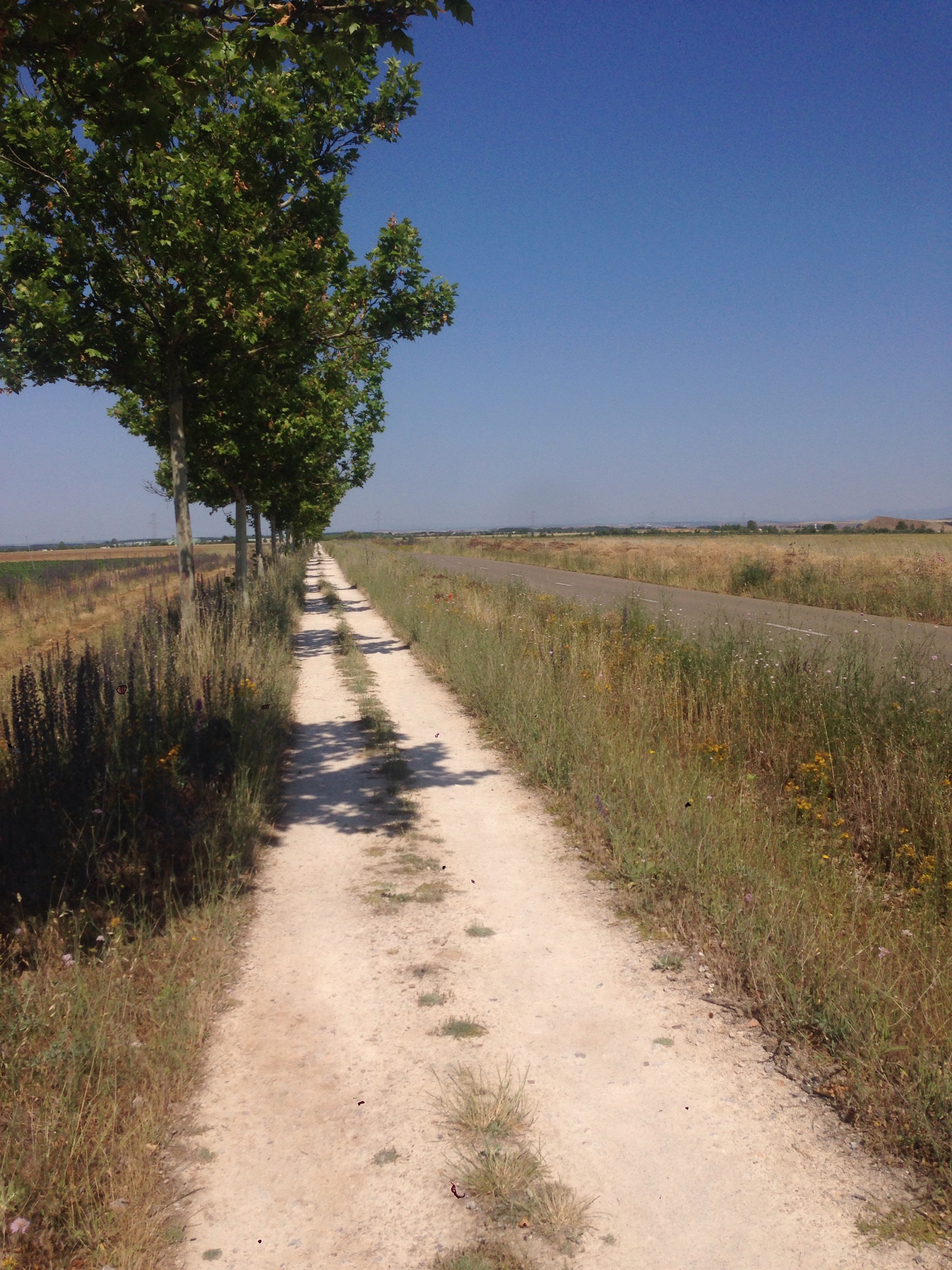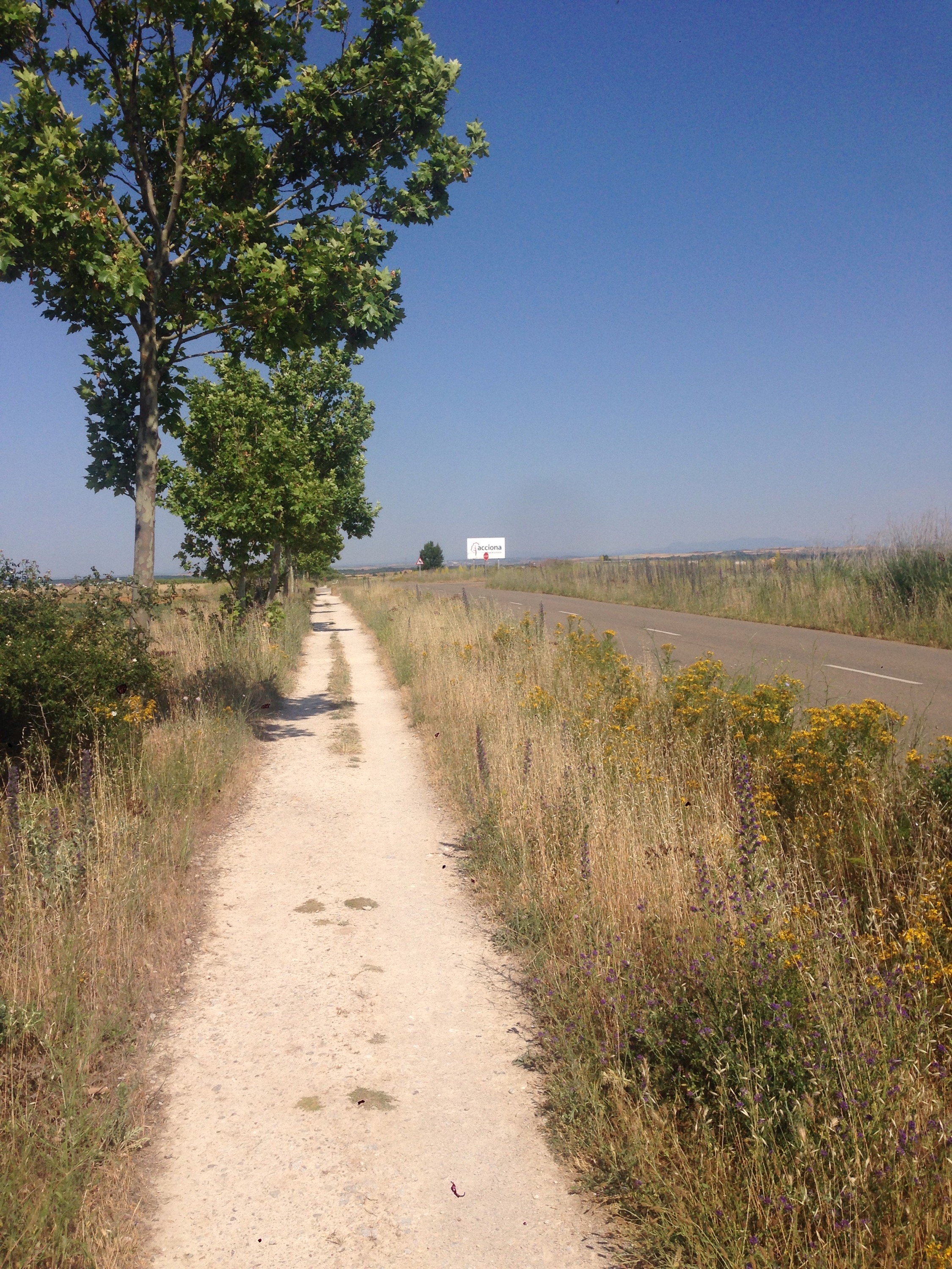 The path between Reliegios and Mansilla was along a very bright white senda beside a very quiet road.
