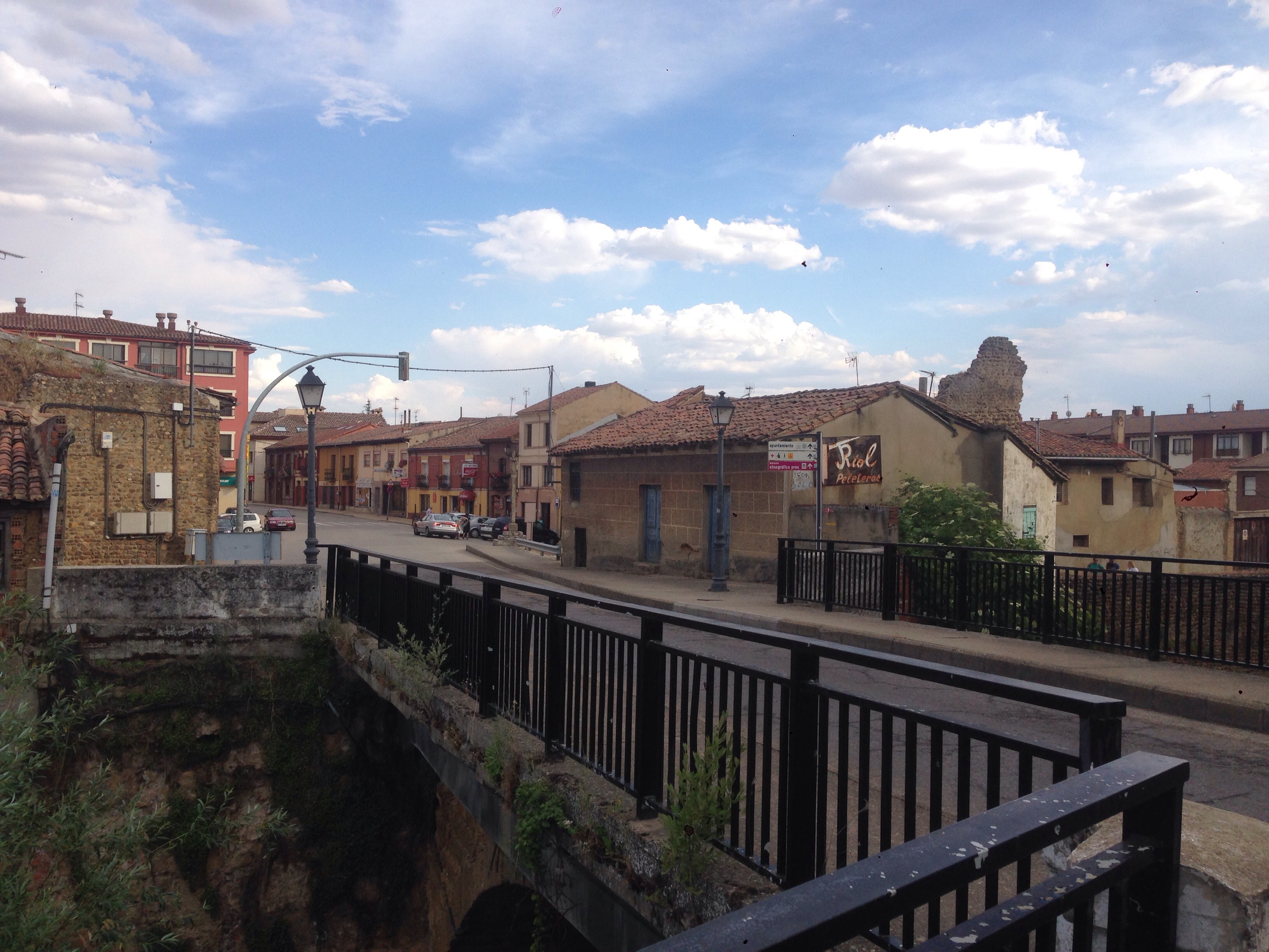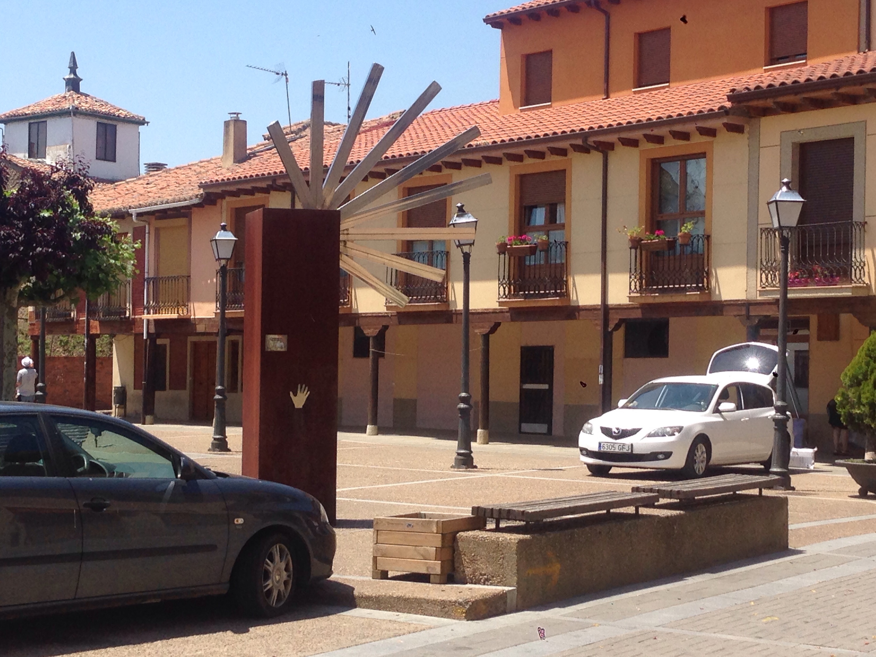 There were a couple of other pilgrims did you spot them above. Then into Reliegos for a snack. Mansilla is just in view in the distance about 8km away.