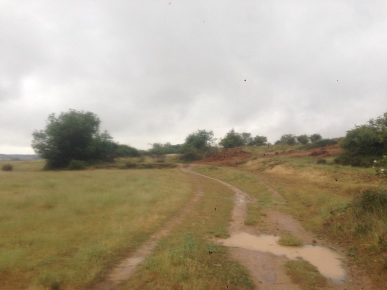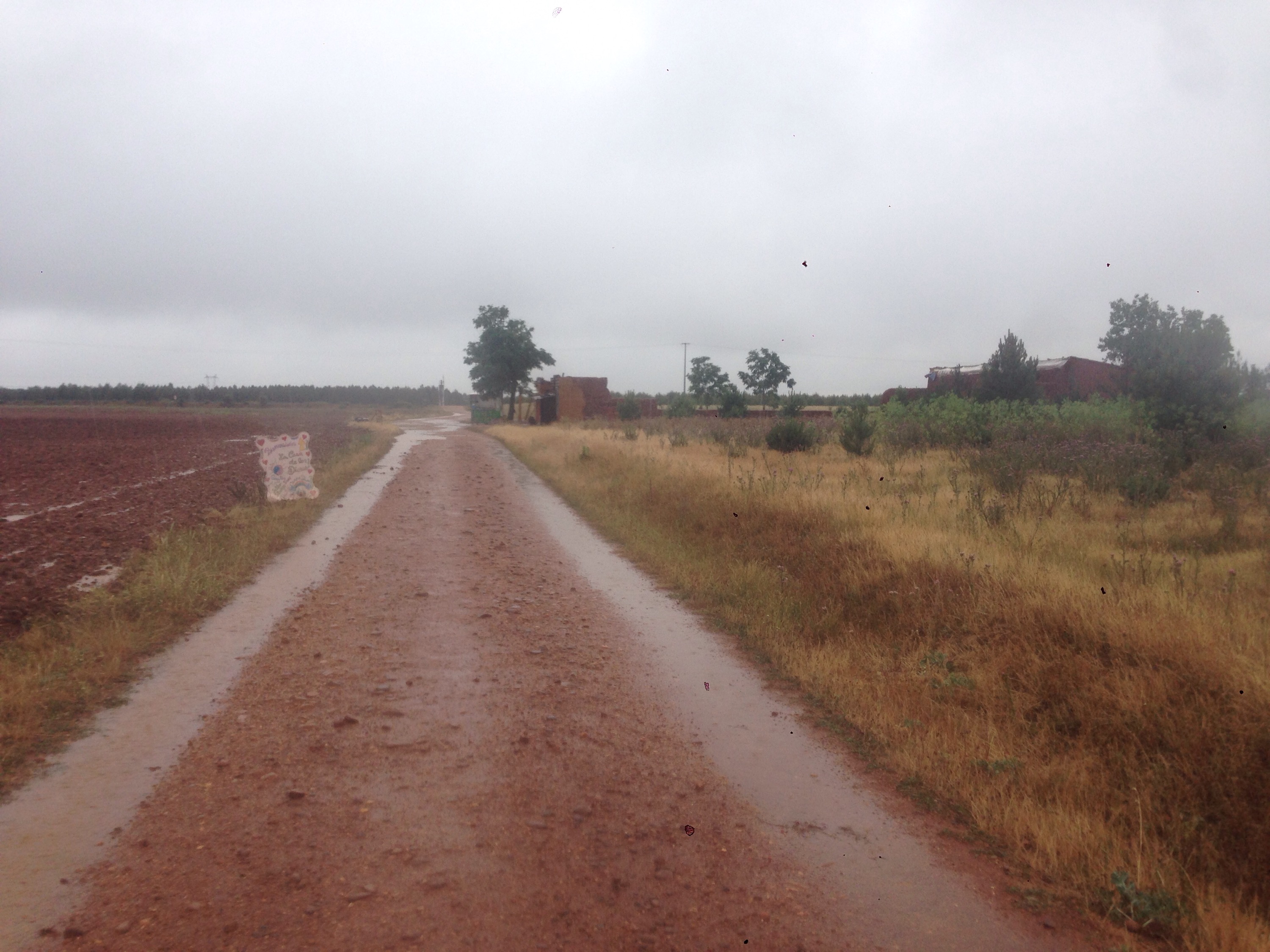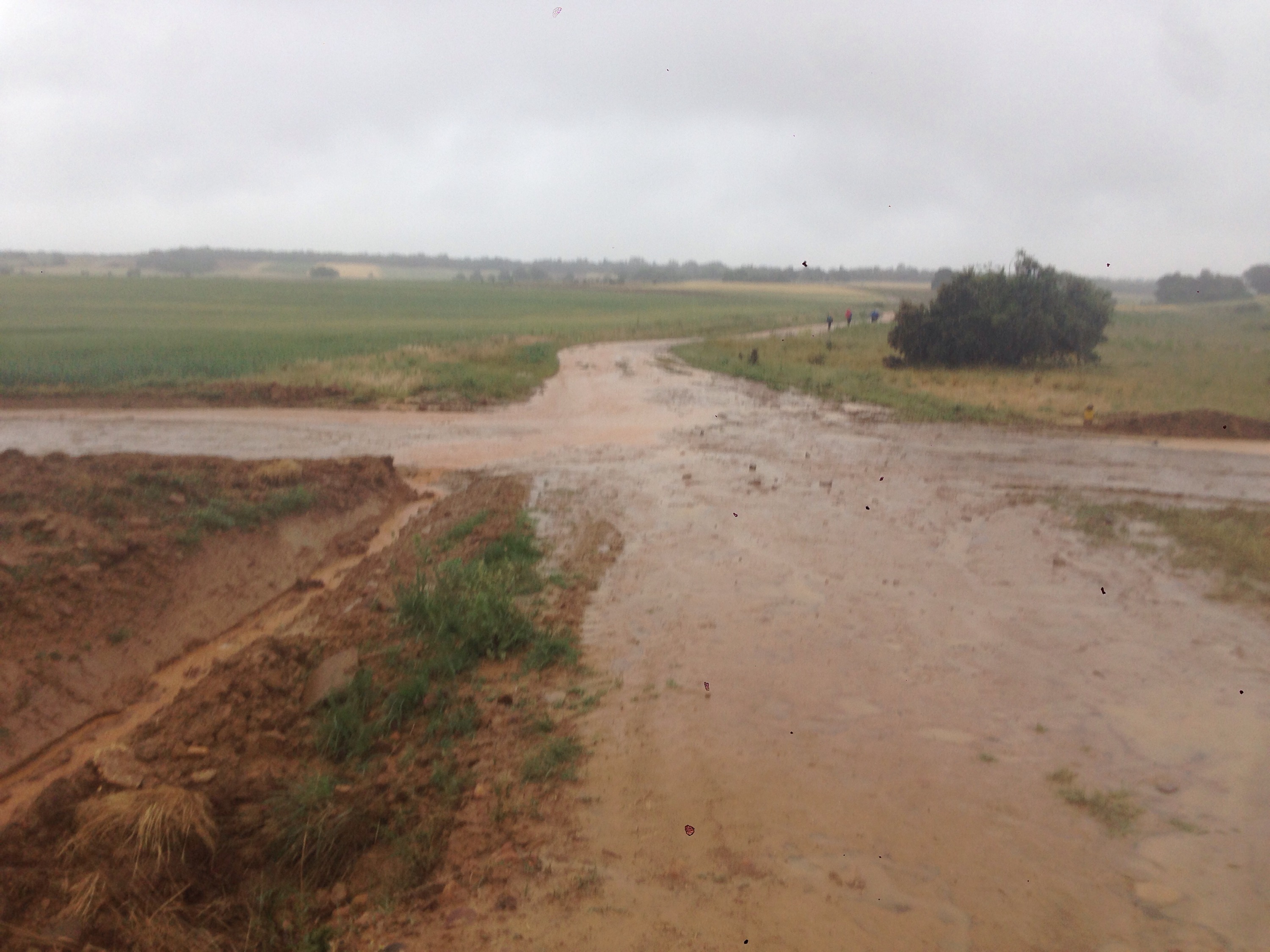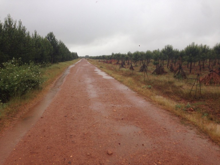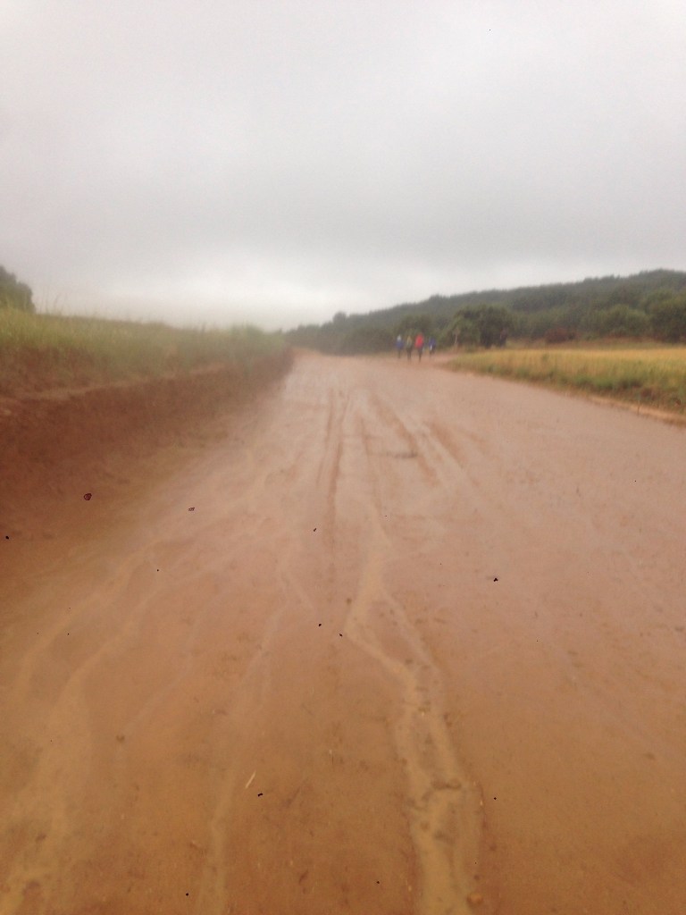 Up some gentle hills today – reminder of what’s to come in a few days.   Rivers of red silt coming down the paths.