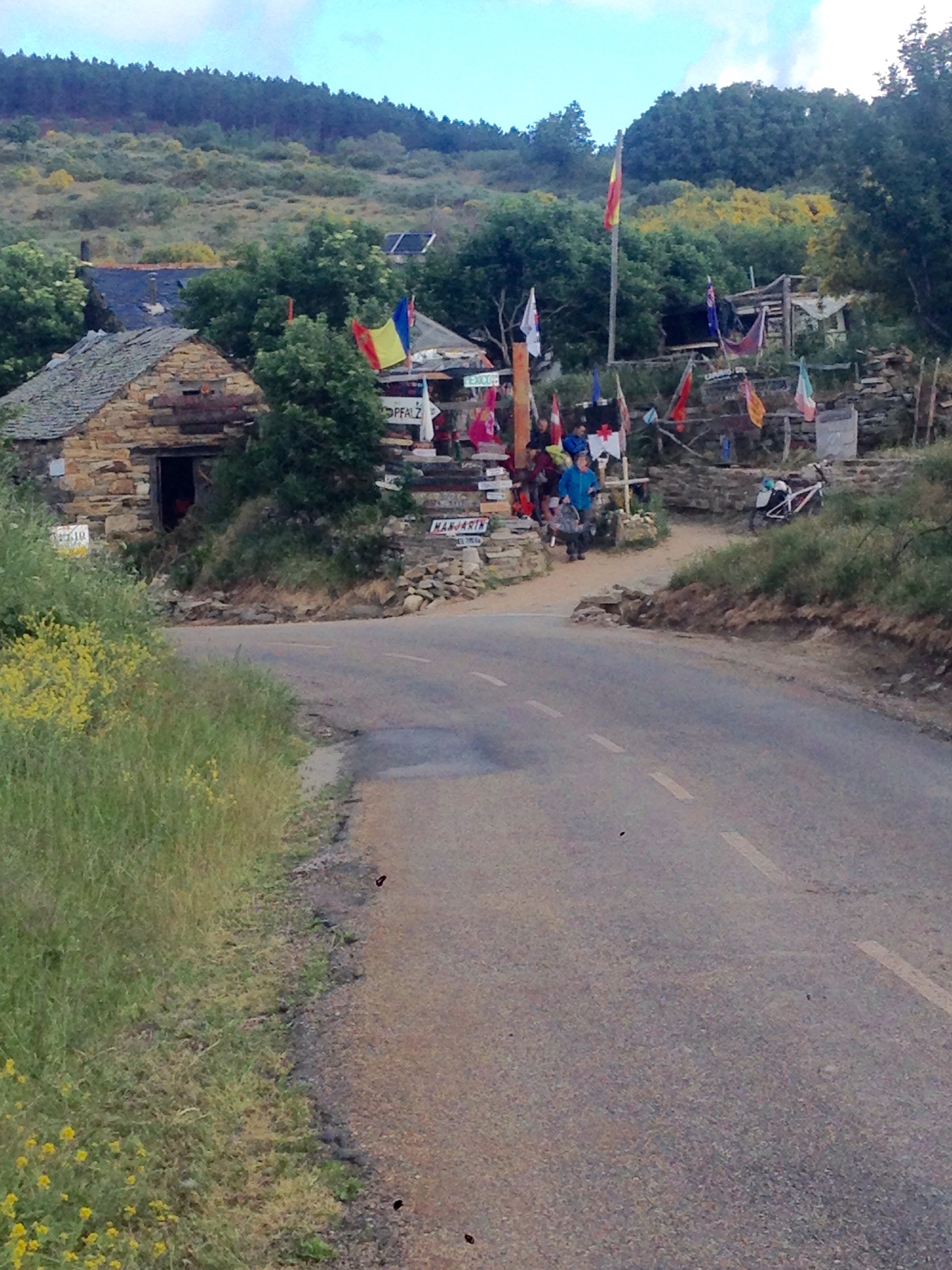 The cruz de ferro – iron cross.         Thomas wasn’t at his Albergue in manjarin- I think he has been unwell. I couldn’t really understand the assistants there.
