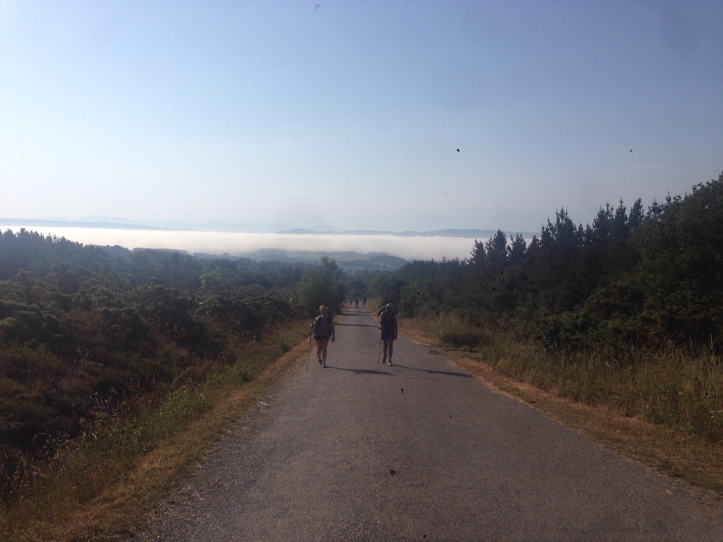 Nearly 10 before we walked into sunshine above the clouds.   Looking back we could see the clouds still in the valleys      Quite a bit of road walking but quiet country lanes