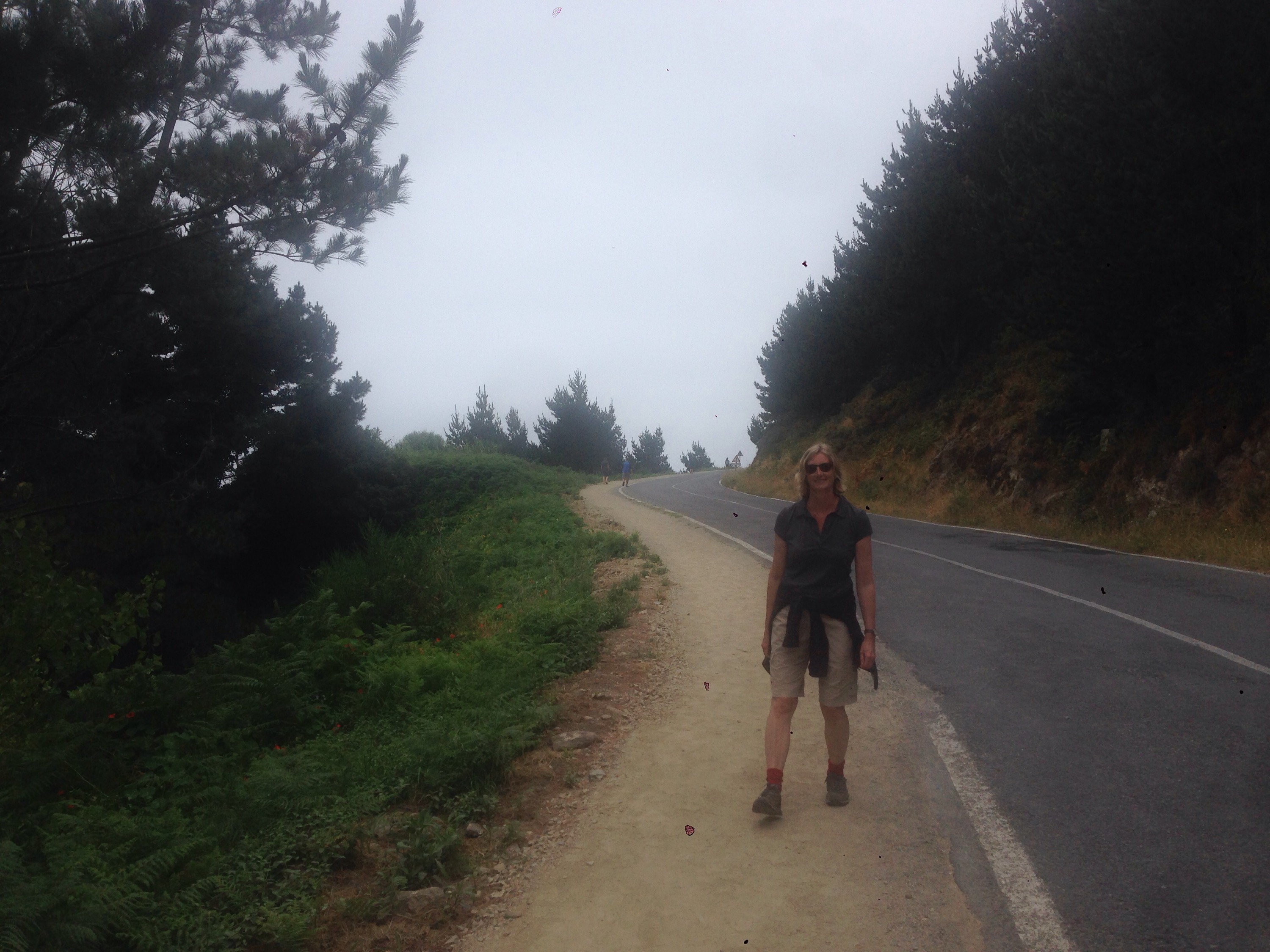 The fire pit where pilgrims traditionally burn heir clothes – already burnt all mine- no selfie- jenny prepares to burn hers  too cold changed her mind.