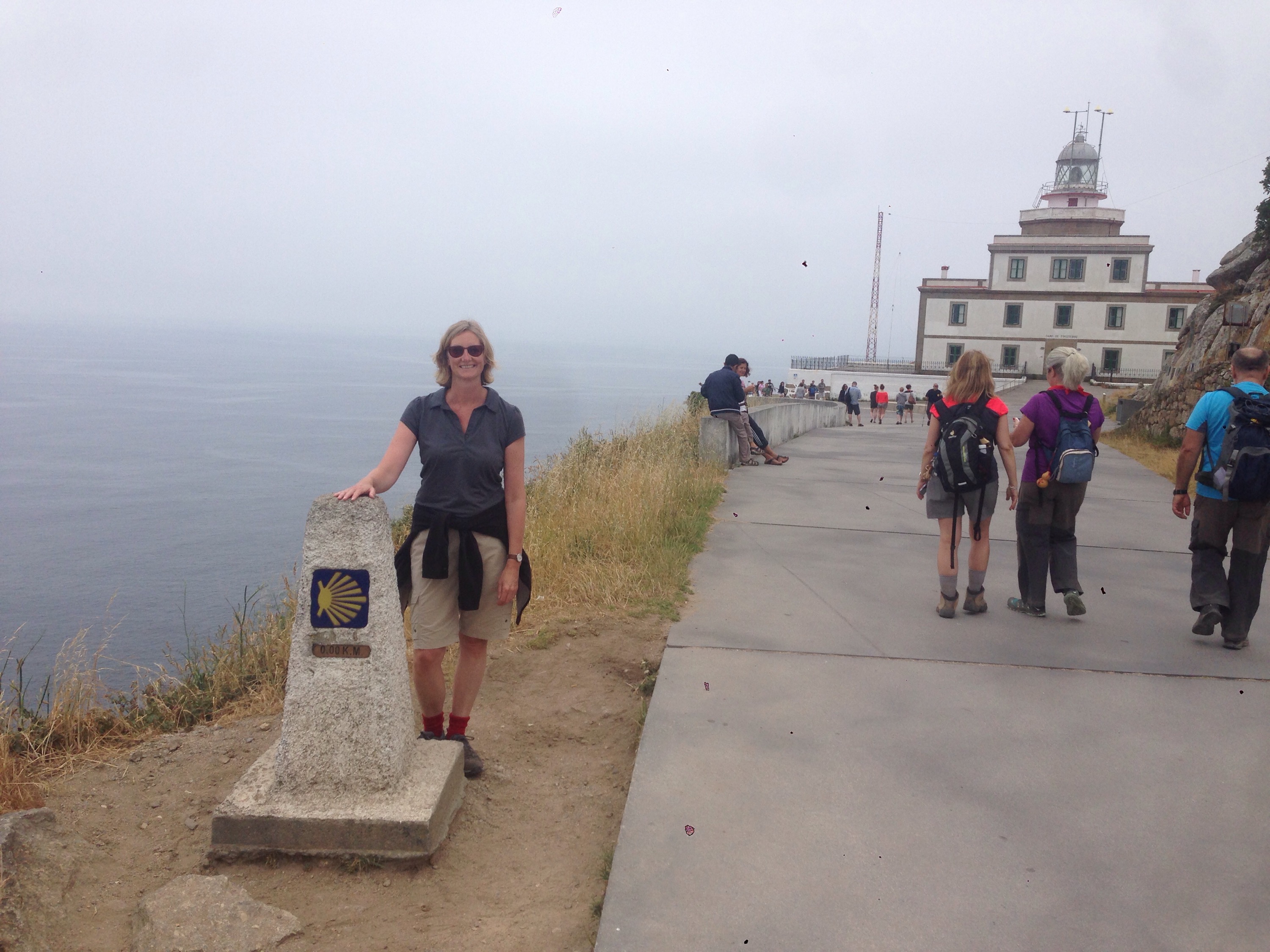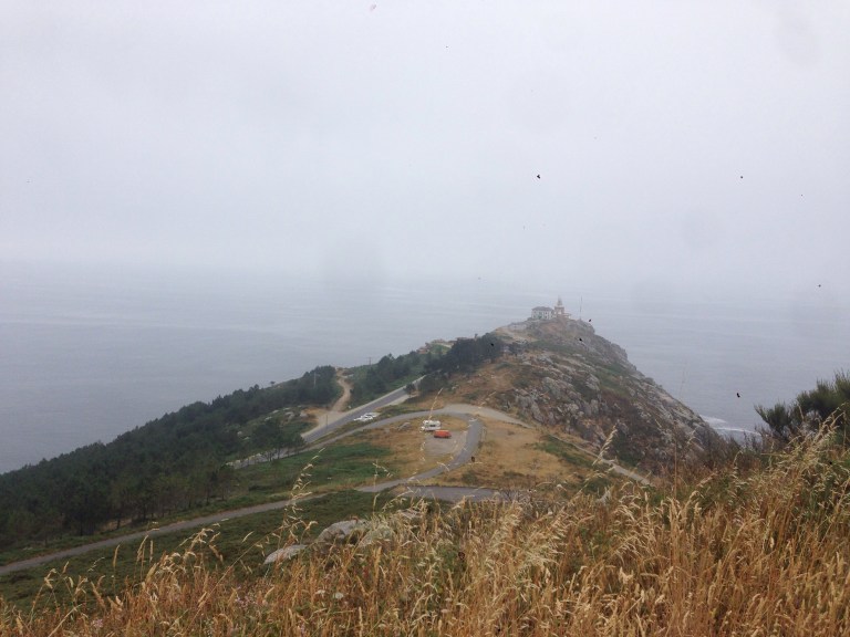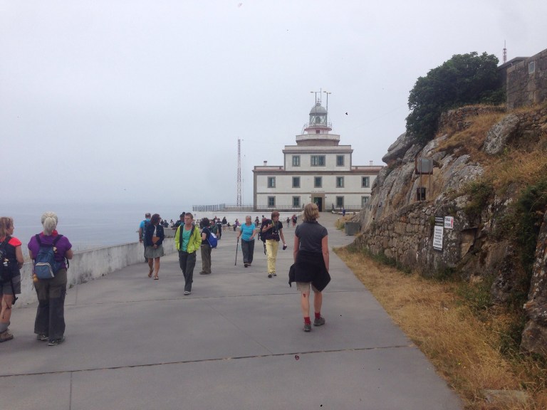The walk up to the light house        The last camino finisterre sign at 0 km and the lighthouse beyond