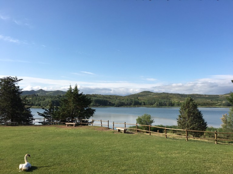 This morning Jenny, Ben and Vivien went home and I carried on alone. Set off 7.30 and had breakfast 5km at cafe by lake on outskirts of Logrono