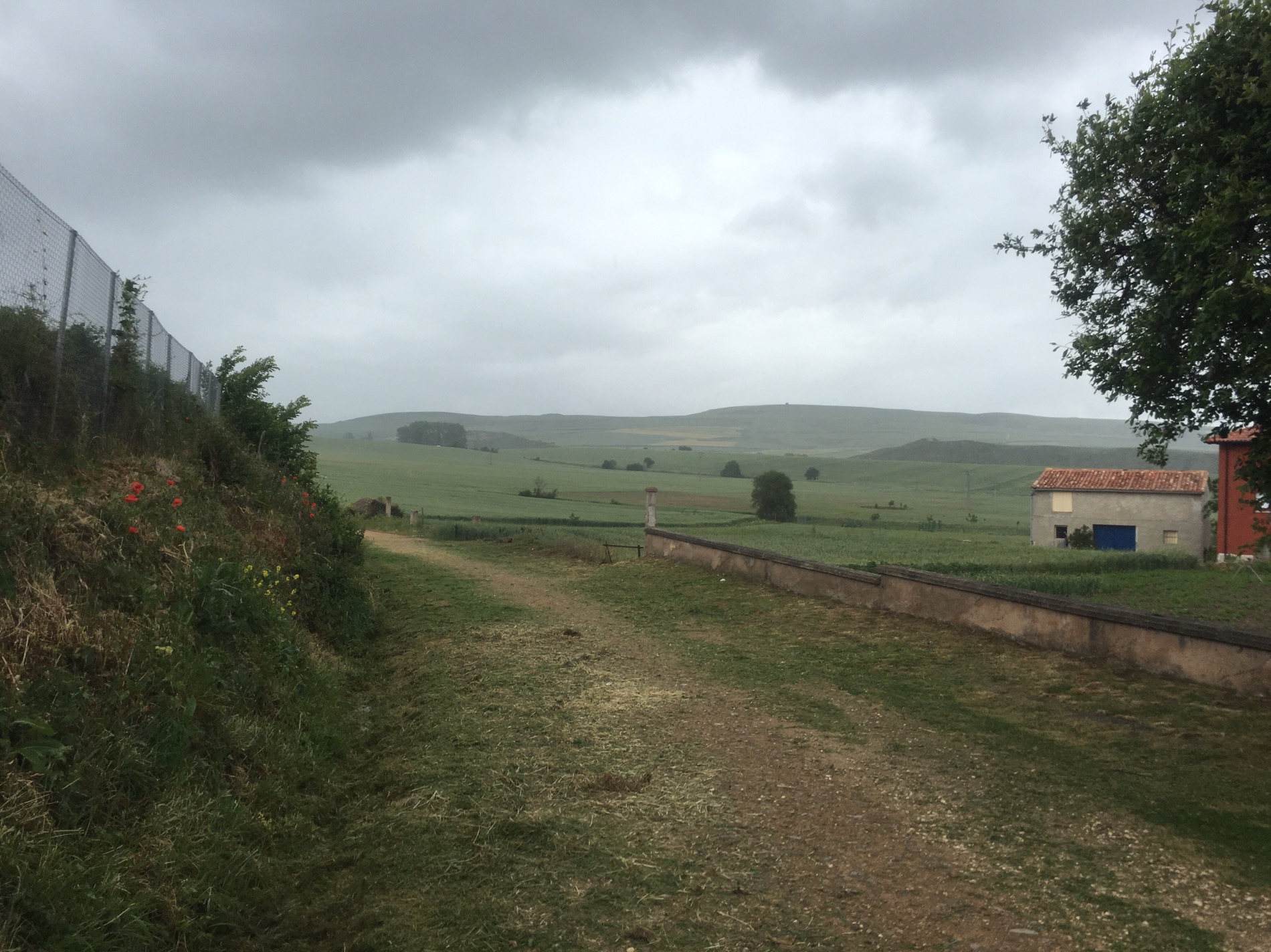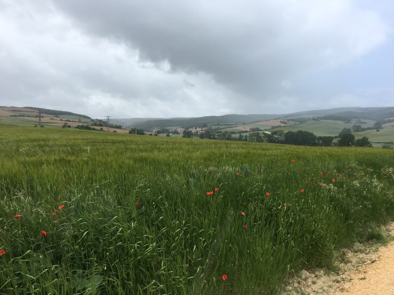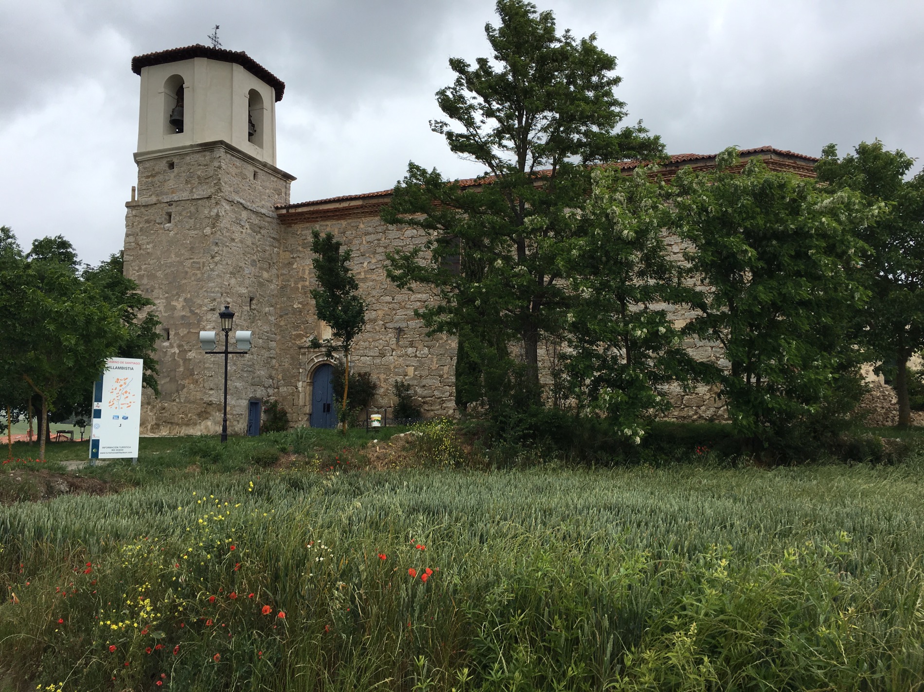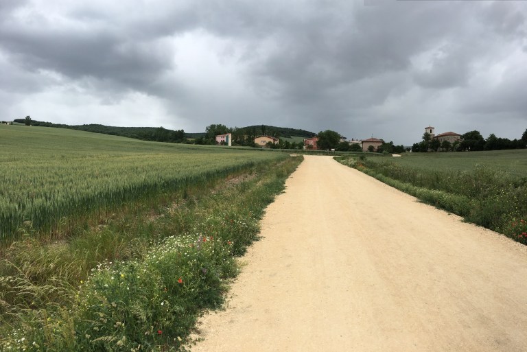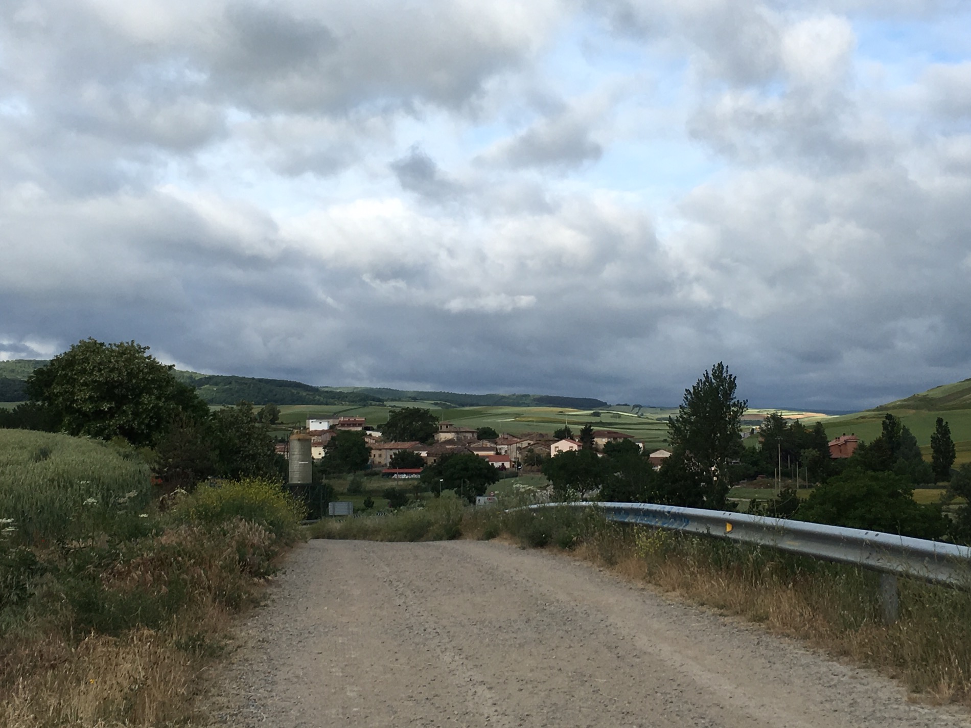 Getting a few light showers as approached Villambistia-so resisted another coffee as 1 1/2 hours to go.