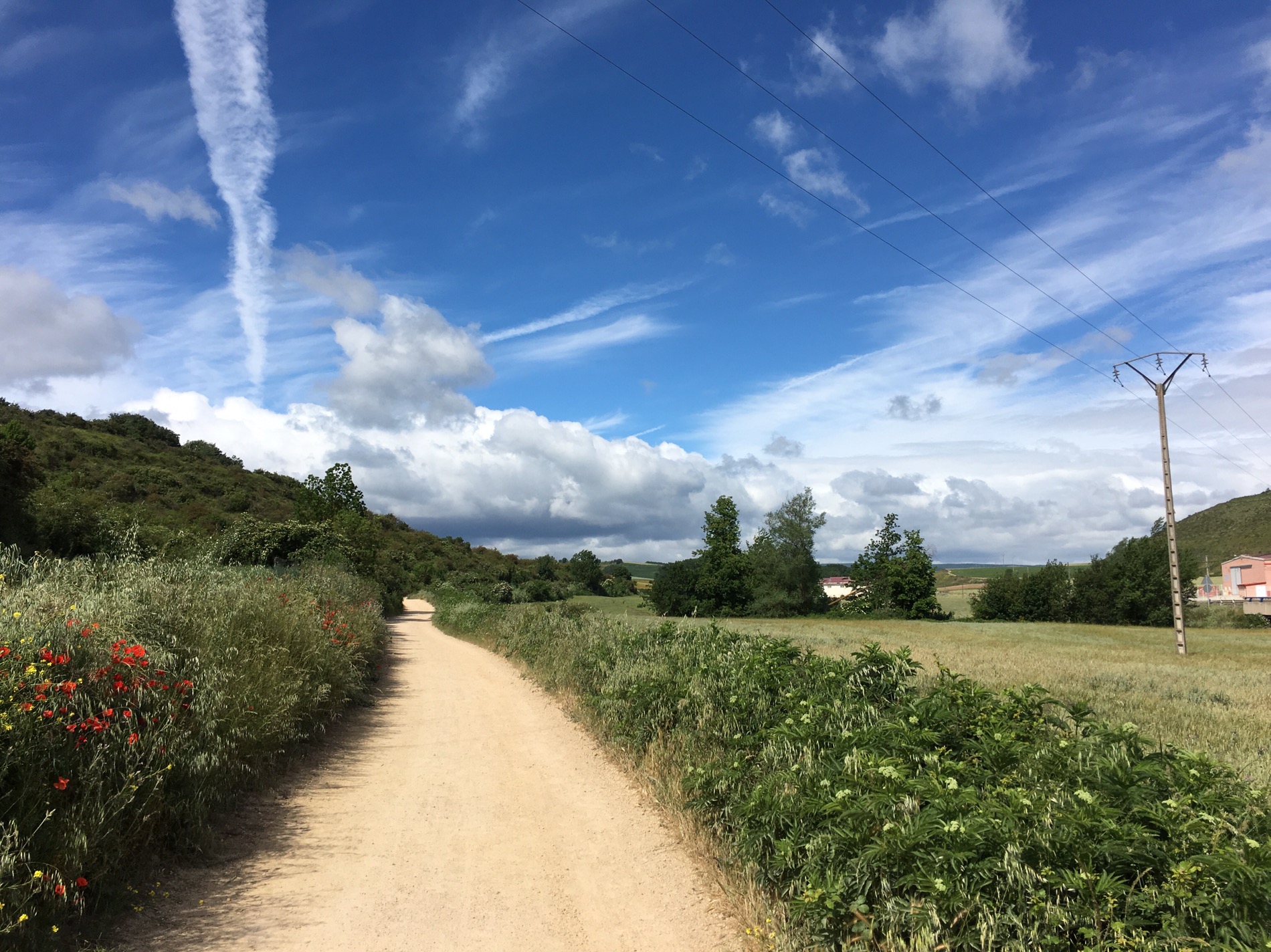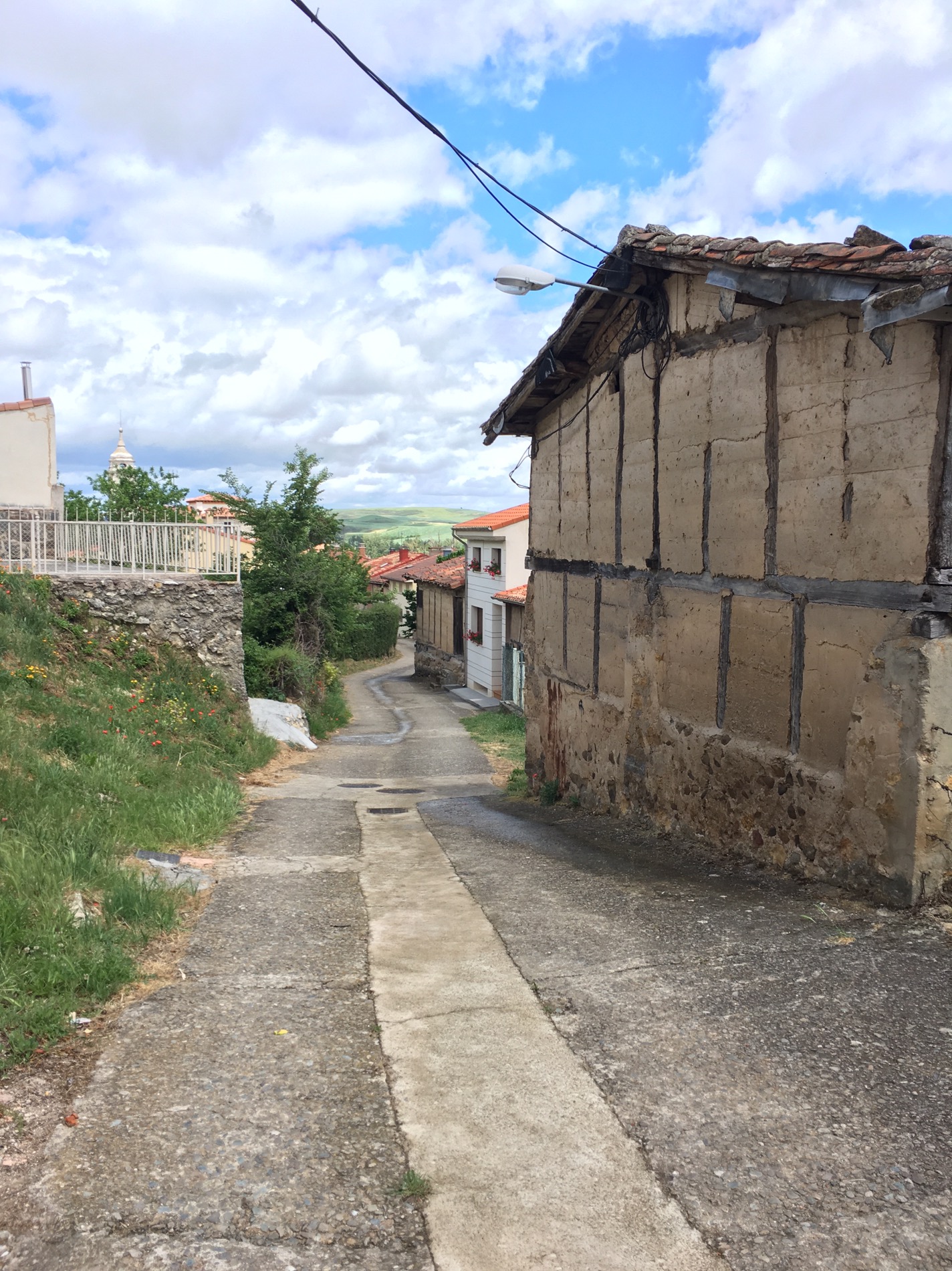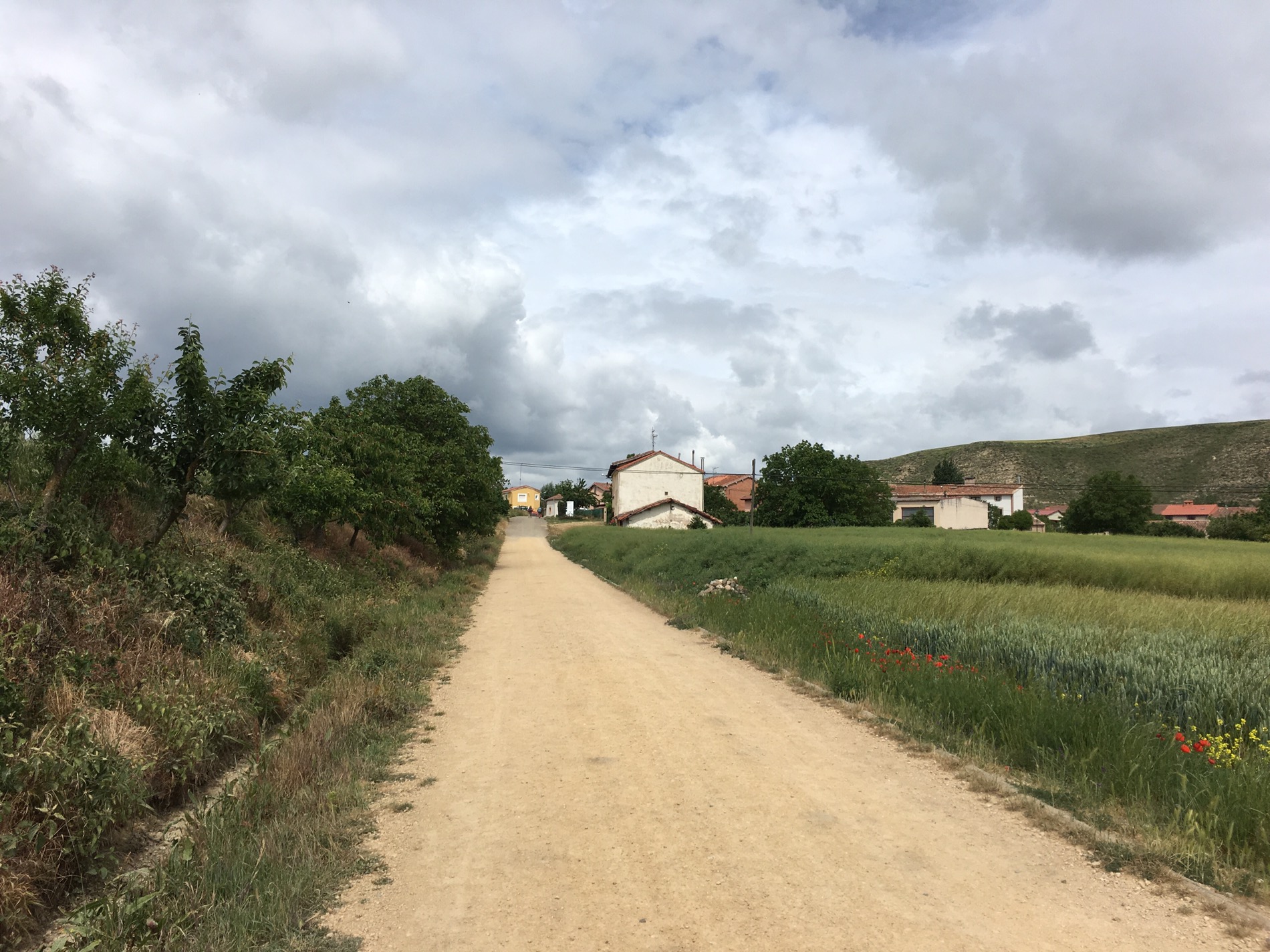 Getting a few light showers as approached Villambistia-so resisted another coffee as 1 1/2 hours to go.