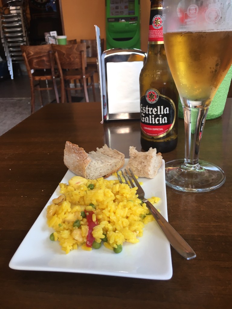 After I’d washed and had siesta wandered round looking for a bar that was open. Everywhere seemed closed till 7pm. Eventually found one quite a long way back. But not a hardship there’s a lovely warm breeze. I don’t think supper is going to be anything but basic 3 courses for 9 Euro. This place very different from Ferrol.