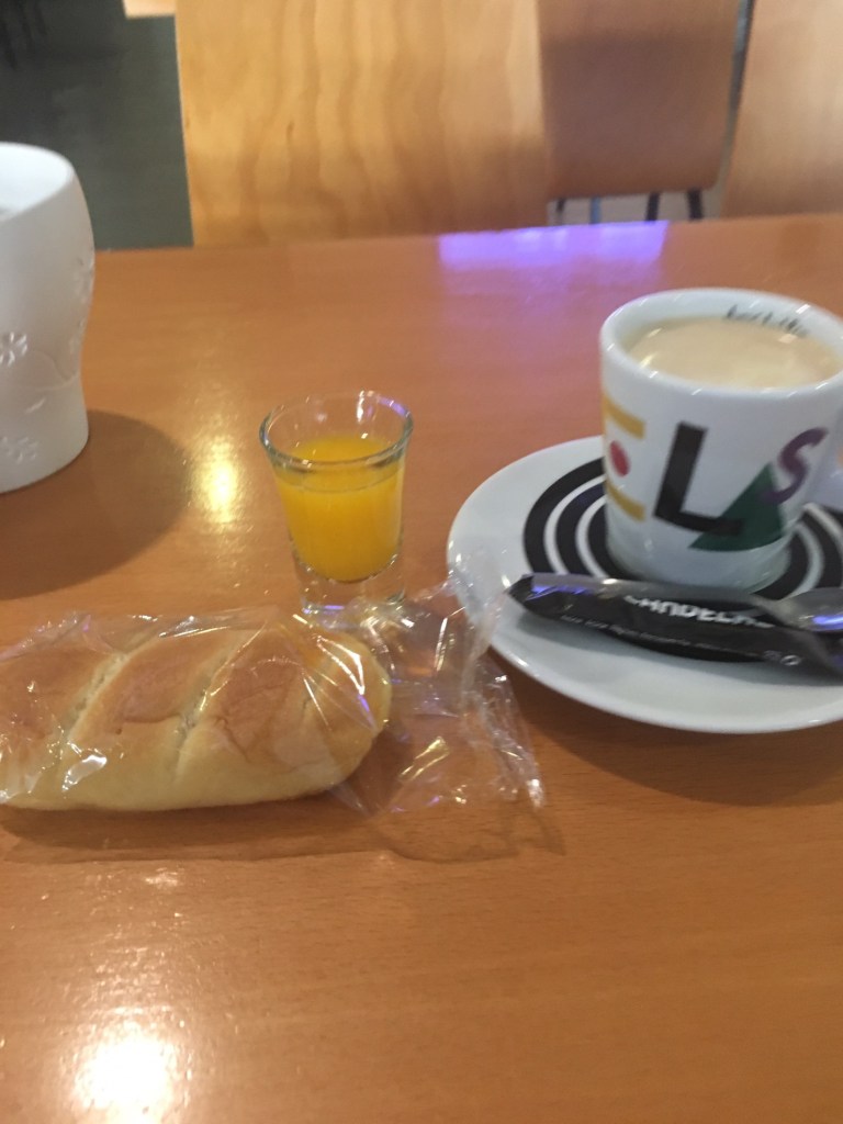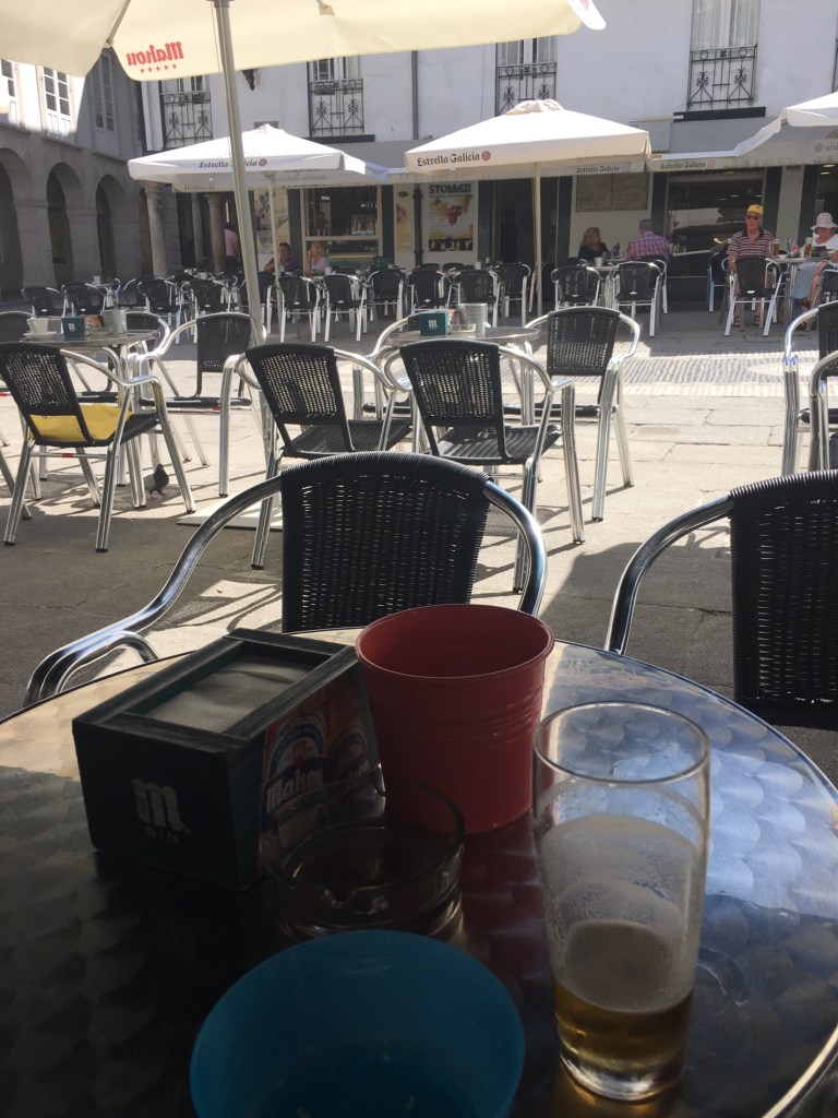 Second breakfast in Fene. Just a snack and to get a stamp (sello) on my official pilgrim card -given an orange juice shot!!