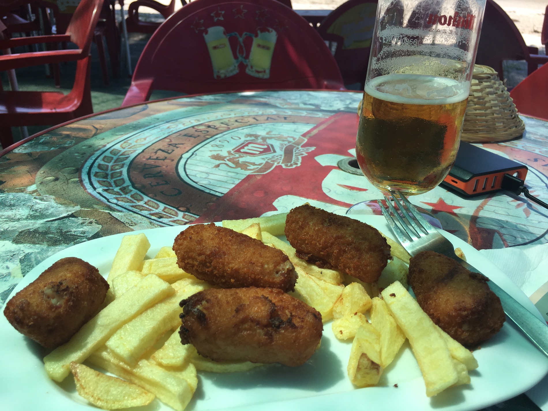 And to get out of the sun had to have a beer and ham croquettes.
