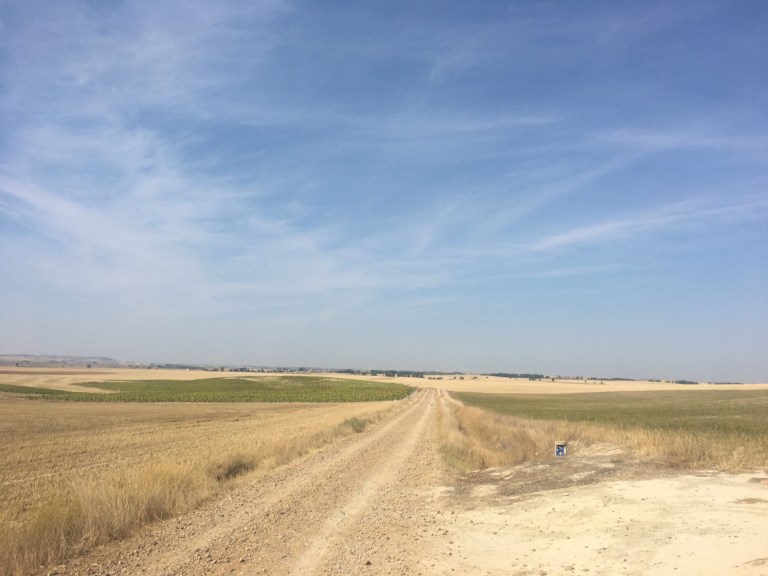 Now as an “experienced” Camino pilgrim I’ve often followed the rule don’t go to first bar in town if you’ve done your research and you know there’s more. The first will be busy, staff less attentive? Well I knew the second bar in Itero was excellent – had a good breakfast there 4 years ago when I last did this section. So I explained all this to Ben and lo and behold….. it was closed. Do we walk back to first about 1/2 km back or carry on to next at Boadilla 8 km ahead.